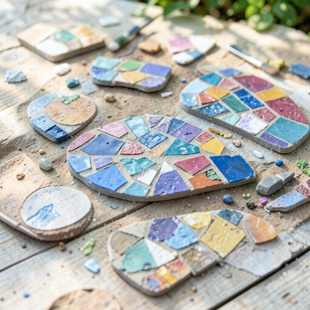 Add character to your garden with mosaic stepping stones. Use broken tiles, glass, or stones to create colorful patterns. They’re a delightful way to personalize your outdoor space.
