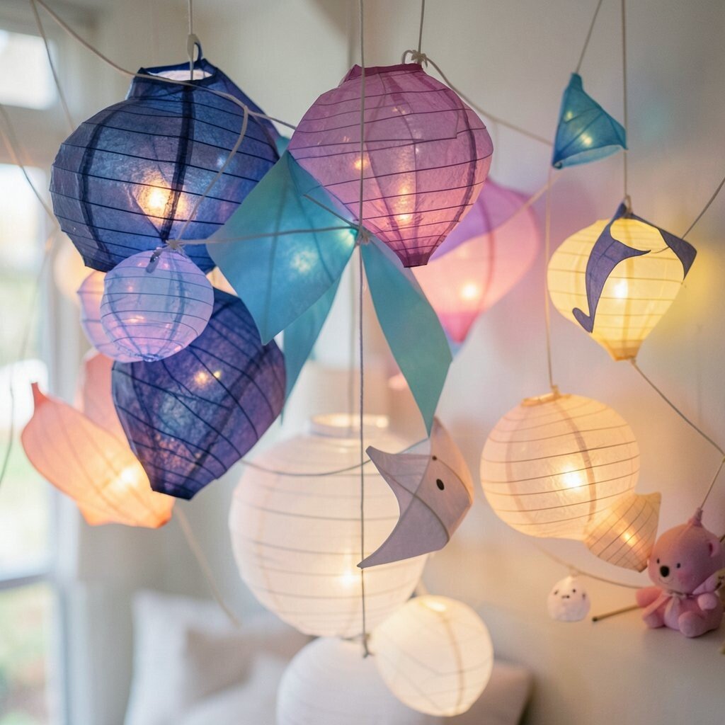 These lanterns cast a gentle glow that feels dreamy at night. Their paper shells can be painted with stars, moons, or tiny flowers for a soft, magical look.