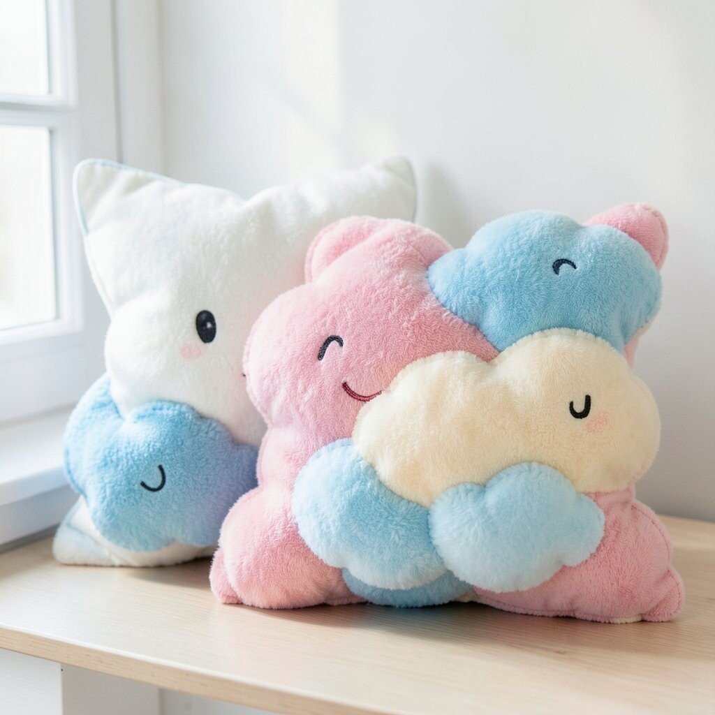 They are nice because they add comfort while also acting like decor. A simple sewing kit, stuffing, and white fabric can keep the price friendly. For a custom look, stitch on sleepy faces, rainbows, or even a name in bright thread.