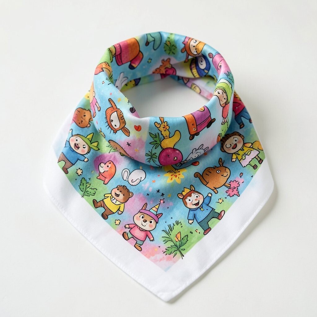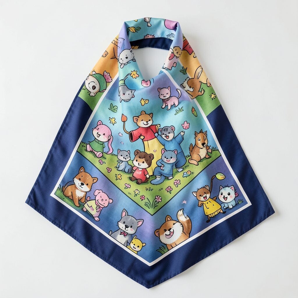 Luxury cartoon scarves often use high-end fabric, crisp printing, and polished edges. The characters may look more detailed, with rich color and smooth lines.