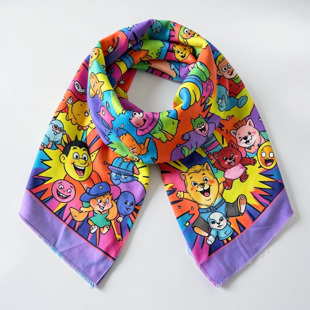 Cartoon scarves can make an outfit feel bright and playful in a second. They bring a little story, a little color, and a lot of charm.