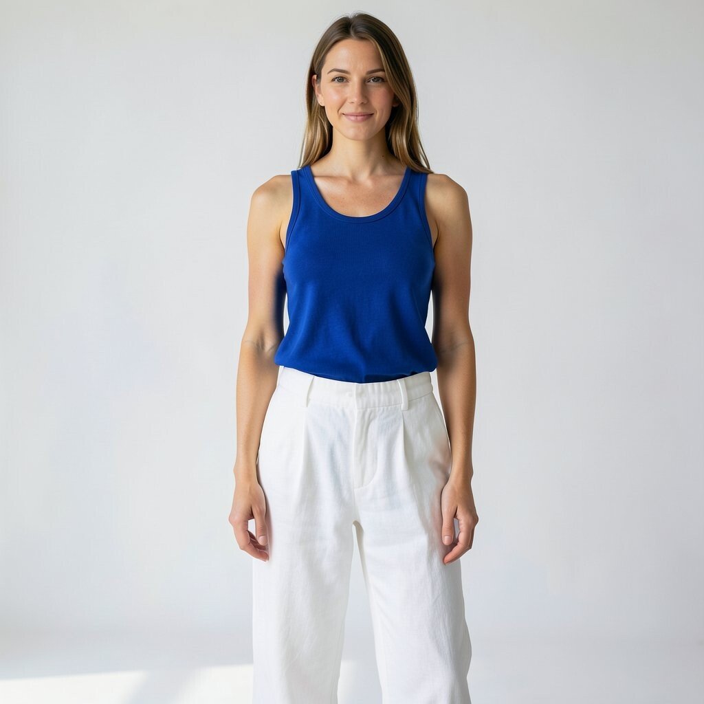 If you want a trend-forward look, choose a tank with a square neck or ribbed texture. Those small details help the outfit feel current without losing its simple charm.