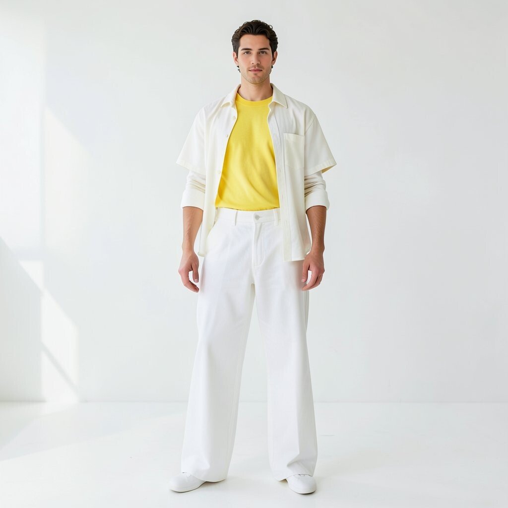 It also fits current style trends that favor tailored pieces with a modern twist. That makes it a great final outfit idea for anyone who wants white pants and a yellow shirt to feel fresh, polished, and easy to wear.
