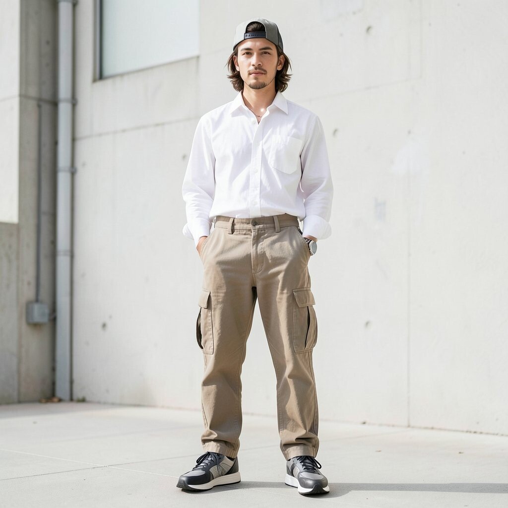 For a street-style edge, team your white shirt with cargo pants. This look is both practical and trendy, perfect for an urban setting. Choose pants with multiple pockets for added style.