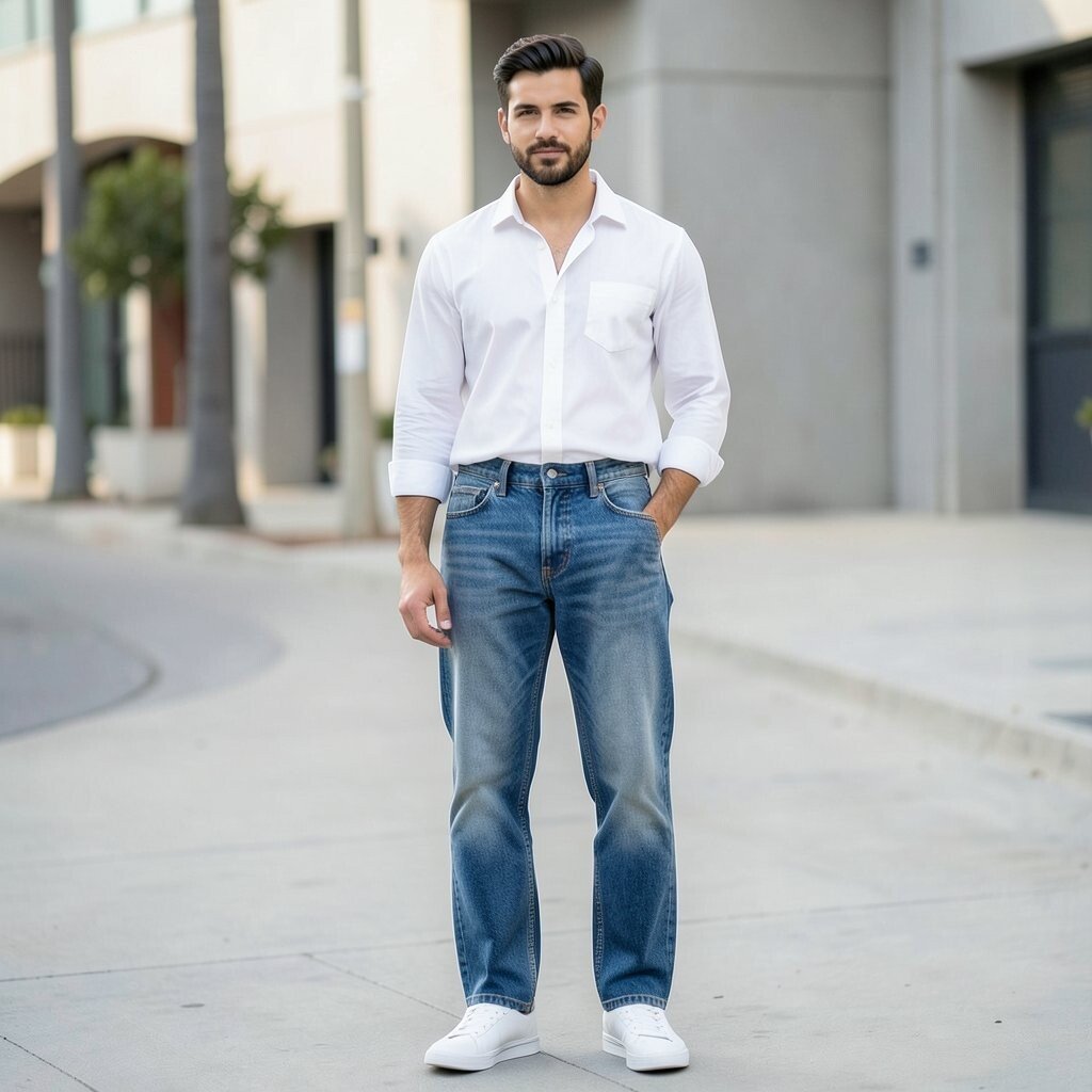 Pair your white shirt with your favorite pair of jeans for a timeless, casual look. The crispness of the white shirt contrasts beautifully with denim, creating a laid-back yet polished vibe. Roll up the sleeves and add some sneakers for a relaxed day out.