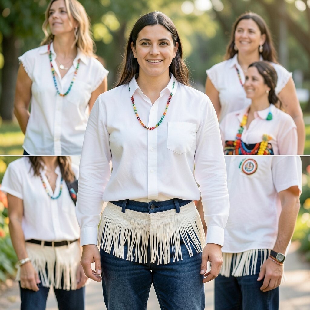 Get festival-ready by pairing your white shirt with fringe details. Whether it’s a fringe skirt or jacket, this look is all about movement and fun. Accessorize with boho jewelry and ankle boots to complete the ensemble.