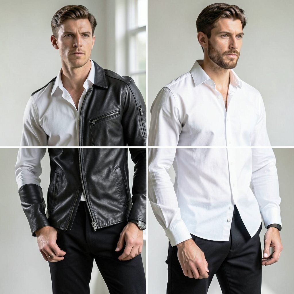 Give your white shirt an edgy twist by teaming it with leather pants or a skirt. The smooth texture of leather contrasts beautifully with the crisp shirt, creating a bold look. Add a leather jacket for extra impact.