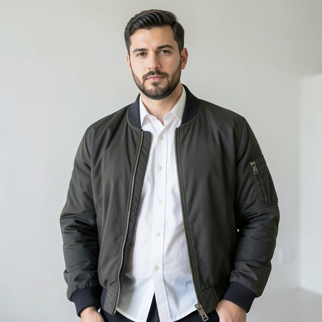 A bomber jacket adds an edgy, sporty touch to your white shirt. It’s perfect for a casual, cool vibe.