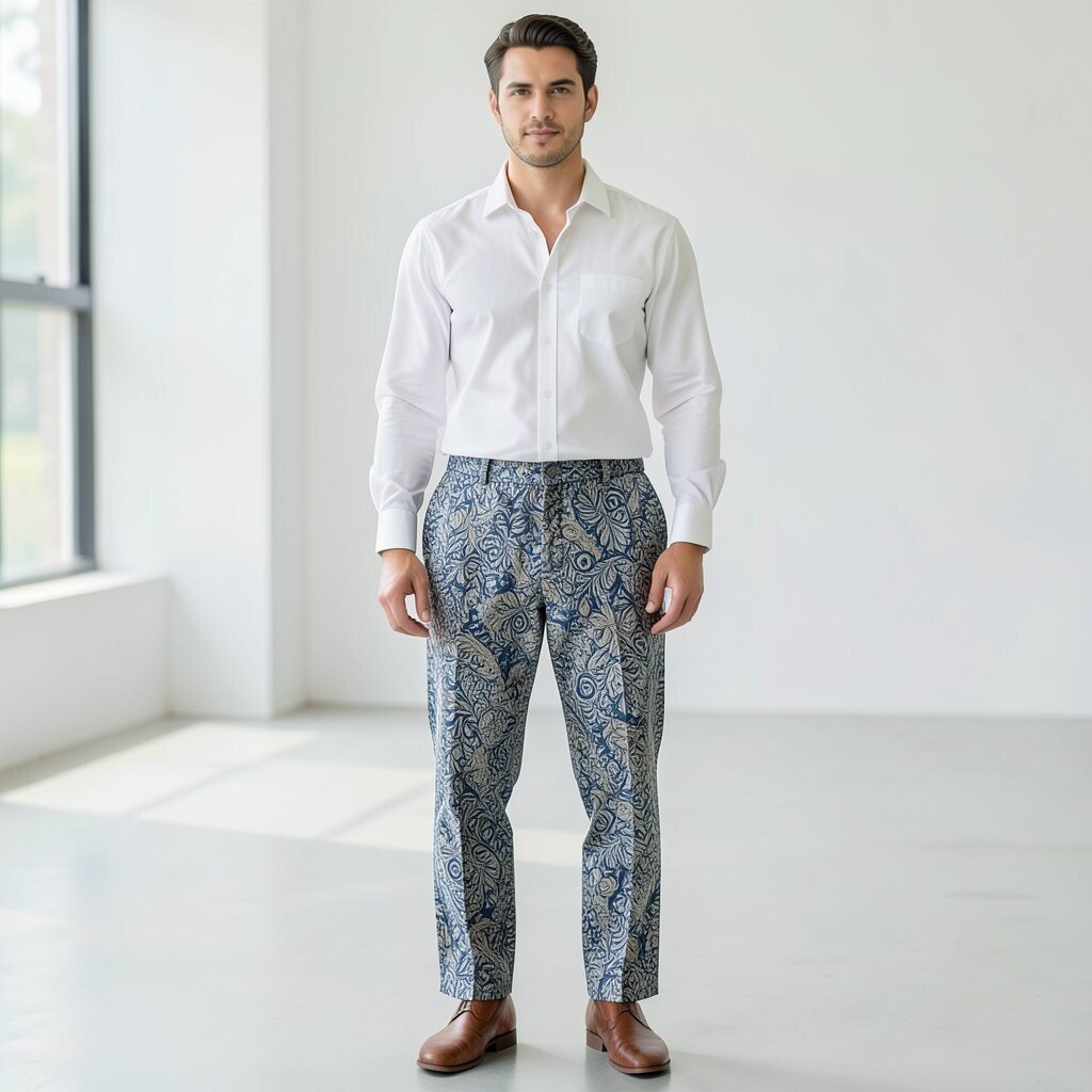 Patterned trousers inject fun into your white shirt look. Choose from florals, stripes, or geometric prints to express your style.