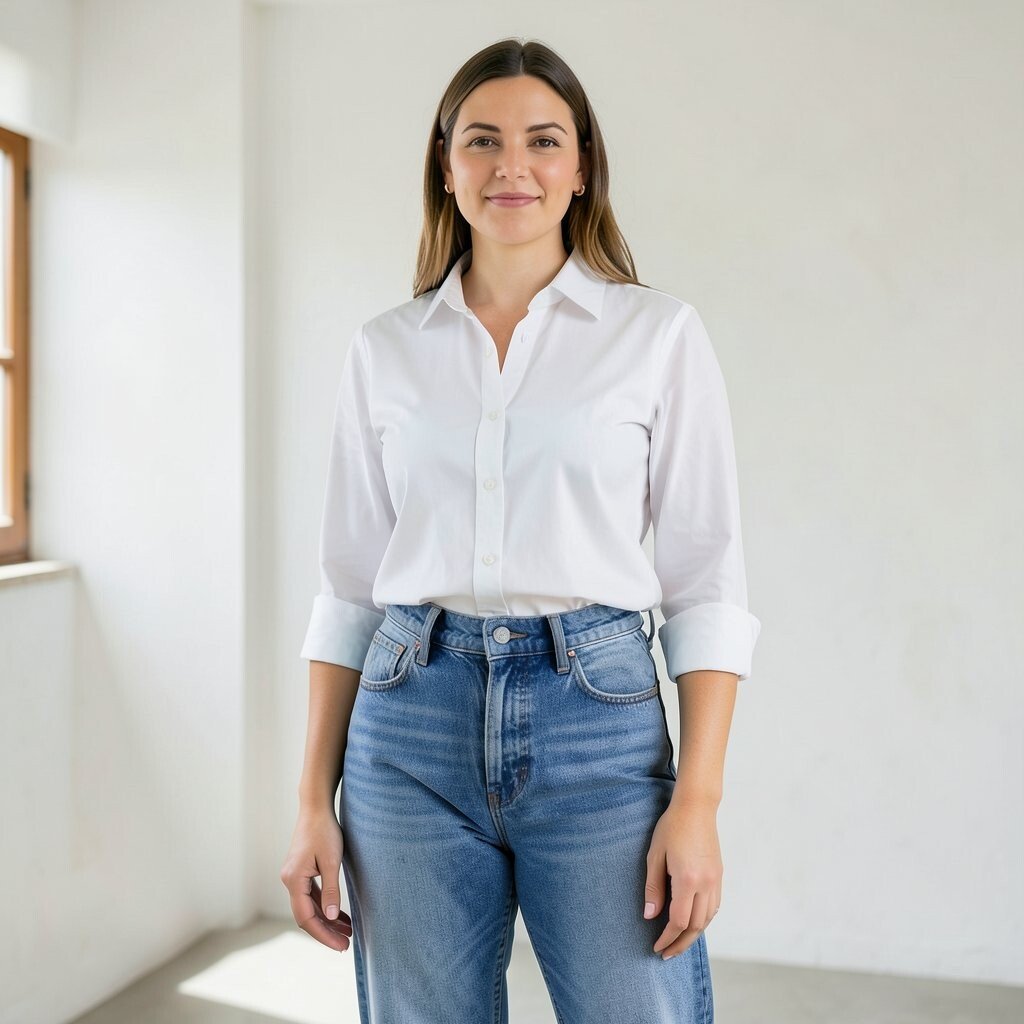 Cuffing your jeans adds a relaxed, effortless vibe to your white shirt outfit. It’s perfect for casual outings.