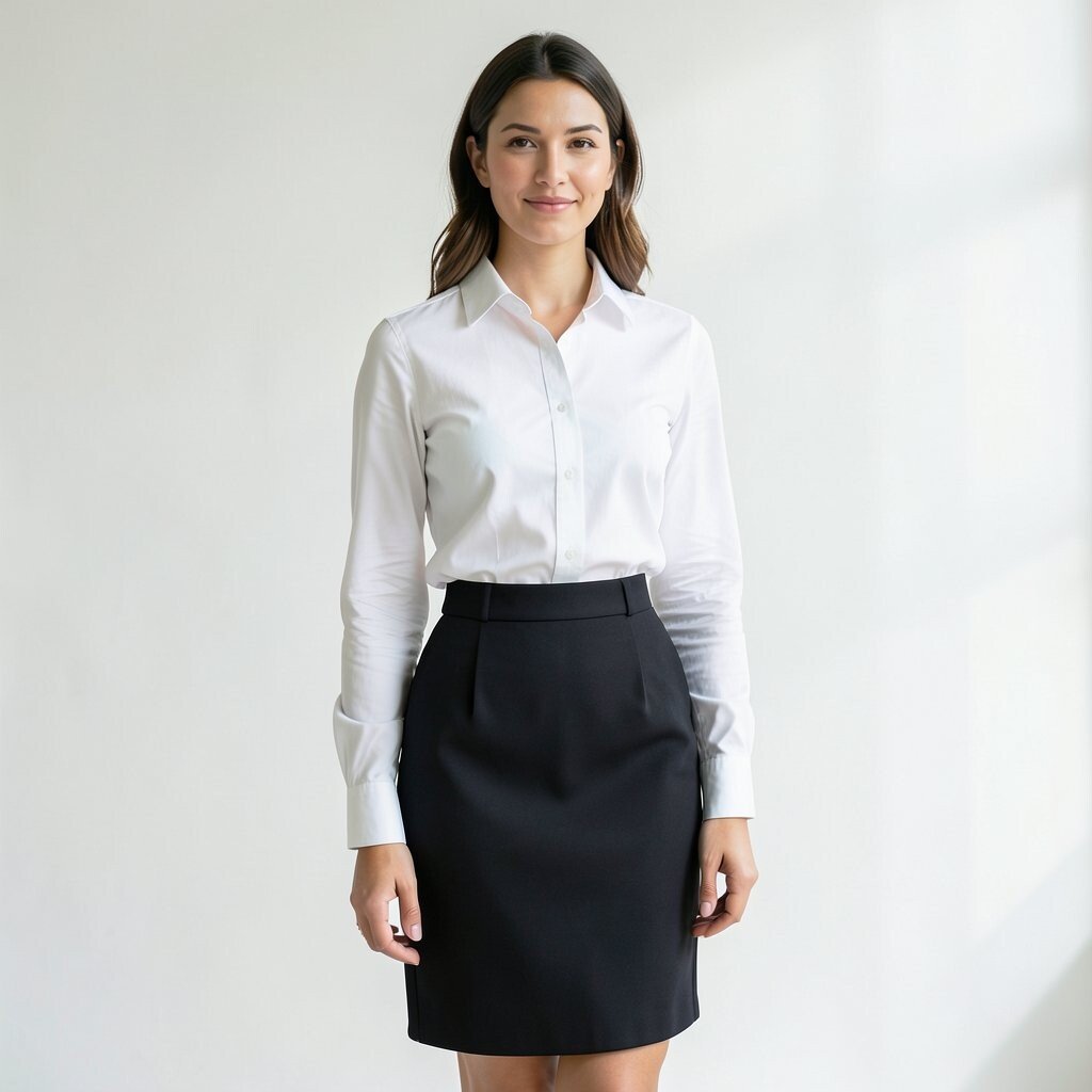 A pencil skirt paired with a white shirt screams sophistication and elegance. It’s ideal for the office or a night out.