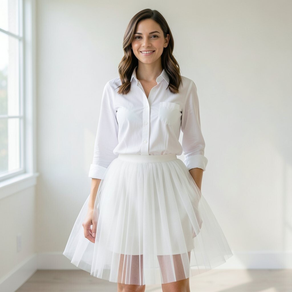 Pairing a white shirt with a tulle skirt creates a dreamy, whimsical look. It’s perfect for special occasions or when you want to feel like a princess.