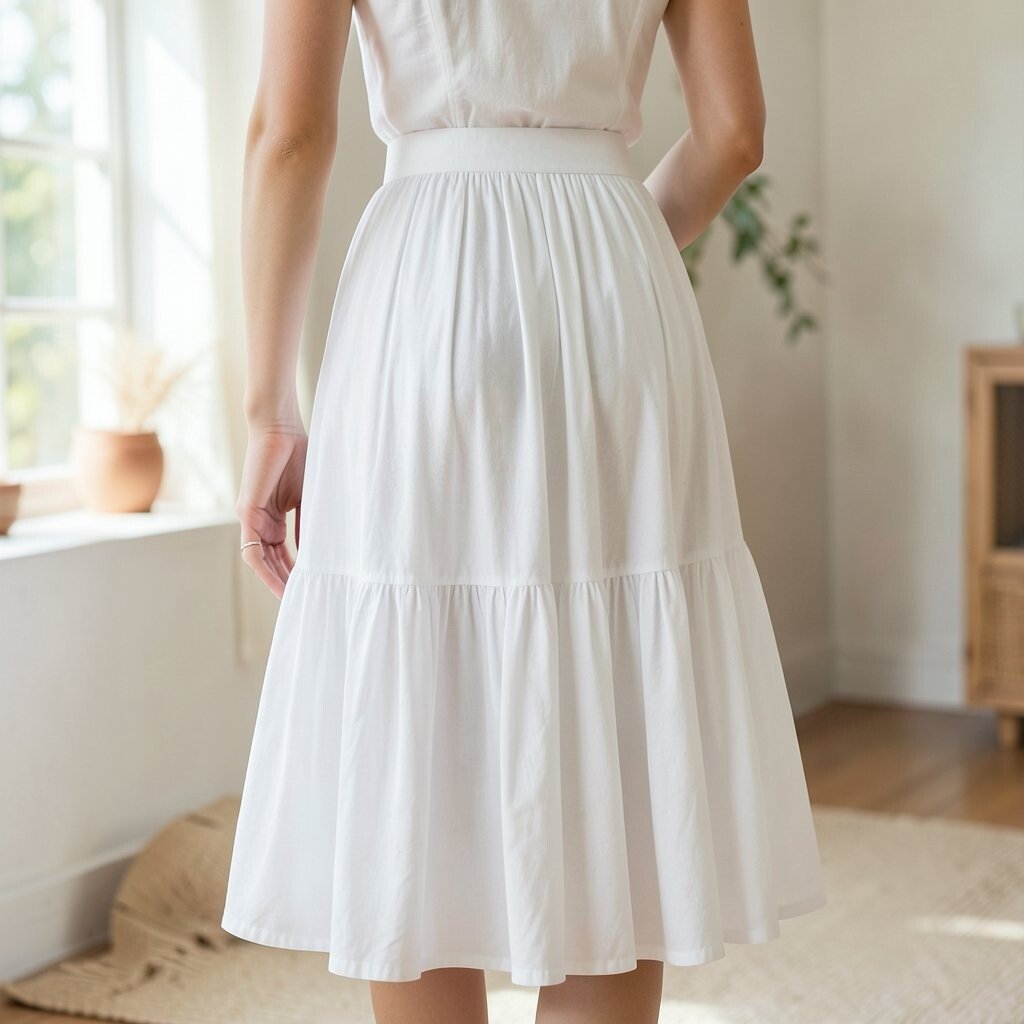 Tiered skirts bring a bohemian charm that’s hard to resist. A white tiered skirt feels carefree and stylish, perfect for a sunny day.
