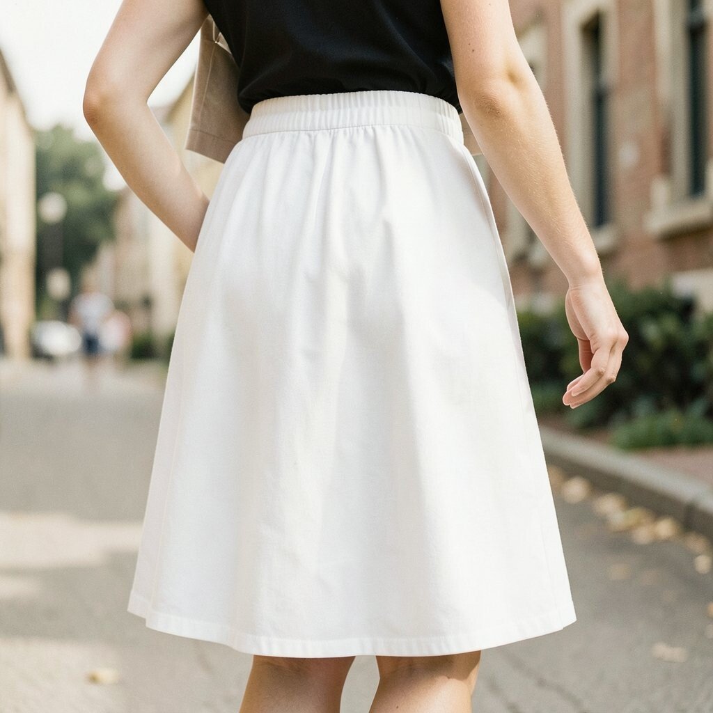 This style is perfect for warm days or a casual outing. The white skirt keeps the look fresh and airy.