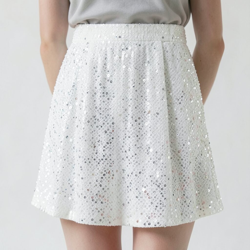 Glamorous Sequins Add a sequin top or jacket to your white skirt for a glamorous evening look. Keep accessories minimal.