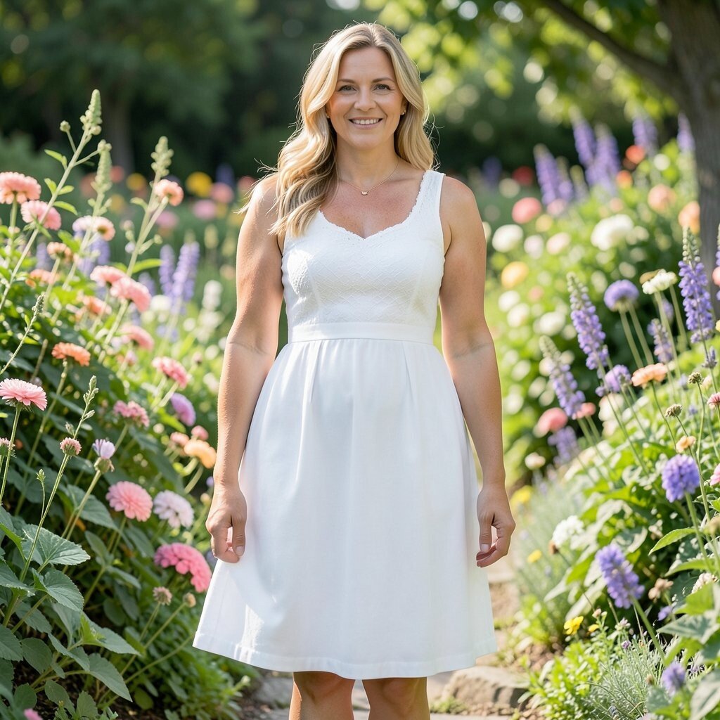 Garden Goddess Pair your white skirt with a floral top and some strappy sandals for a garden-inspired look. Add a sunhat for style.