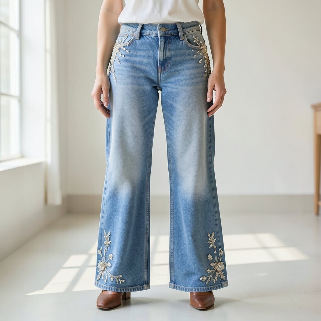 Embellished wide-leg jeans add a touch of glamour to your outfit. They are perfect for those who love a bit of sparkle.