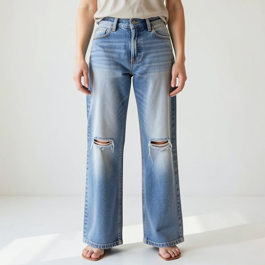 Distressed wide-leg jeans offer a cool, edgy vibe. They are perfect for those who love a touch of rebellion in their outfits.