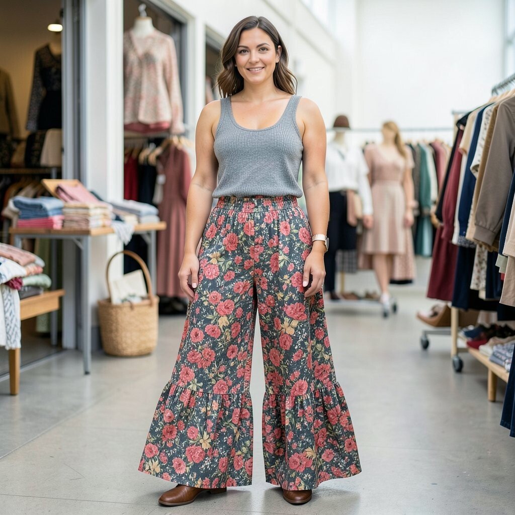 Floral prints are always a hit, and when they’re on wide leg pants, it’s a boho dream come true. Perfect for those who love a bit of flower power.