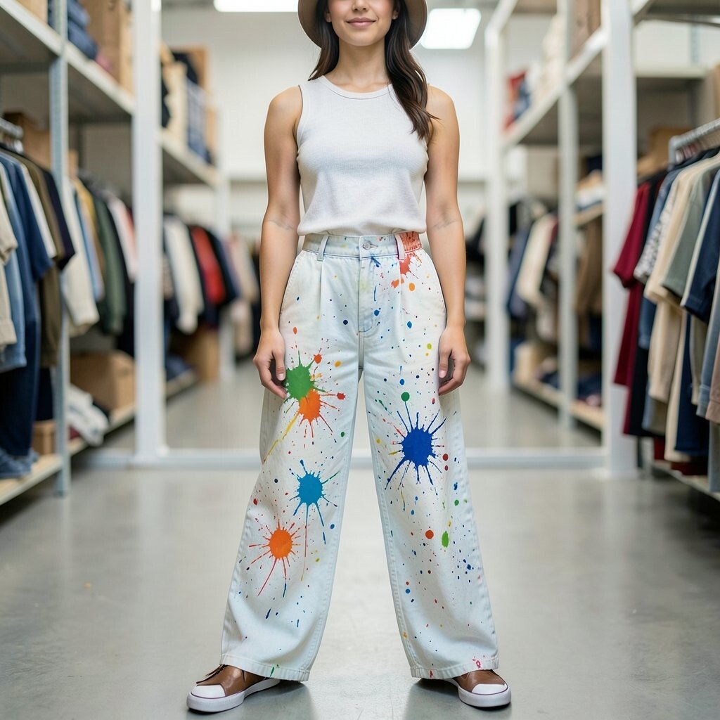 Pair them with a simple top to let the splatters shine. Add some colorful accessories for extra fun.
