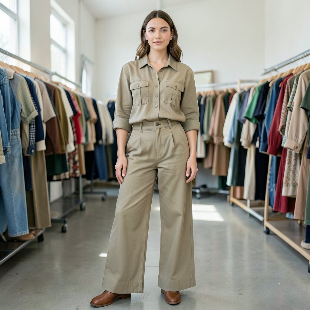 Military-inspired wide leg pants bring an edge to your outfit. They’re sturdy and stylish, perfect for a strong look.