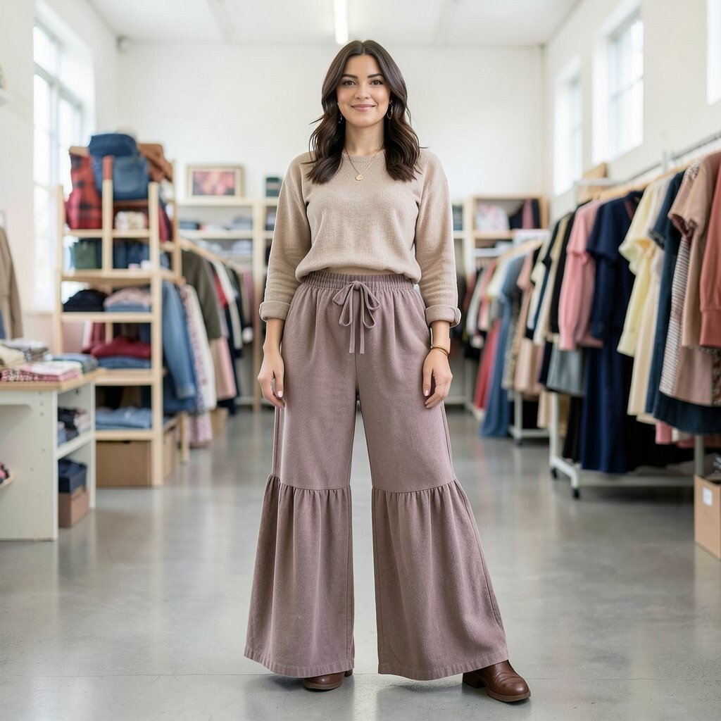 Earth tone wide leg pants offer a rustic, natural vibe. They’re easy to style and perfect for any season.